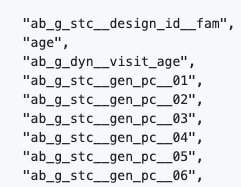 As a quick and easy way to select variables when their names are known, you can use the icon above the data dictionary table and select variables by pasting a list of names. This way of selecting variables is especially useful if you want to recreate a dataset from another person or a dataset that used old naming conventions. You can paste in a list of variable names from any of the below types: